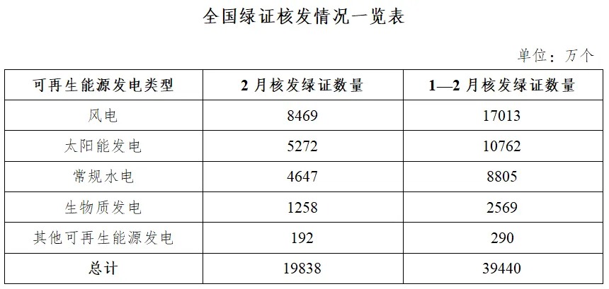 国家能源局发布2026年2月全国可再生能源绿色电力证书核发及交易数据