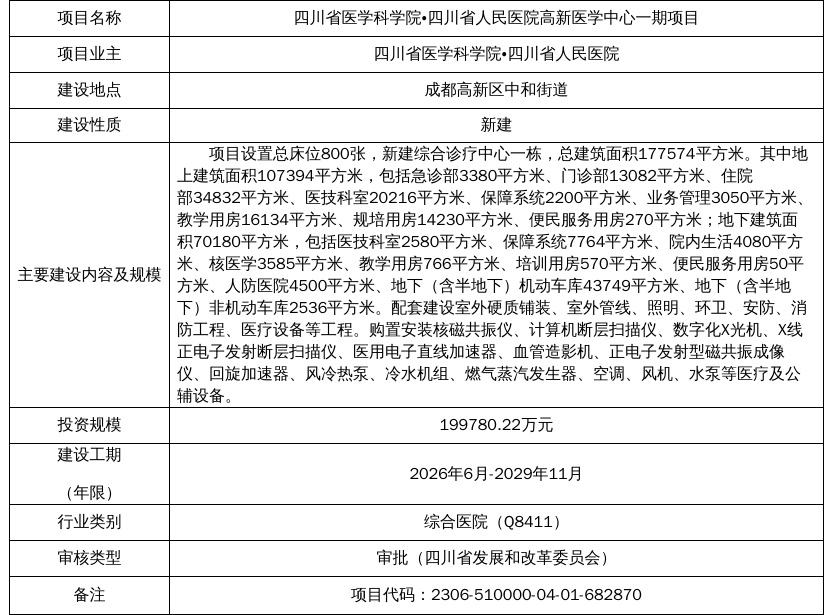 四川省医学科学院•四川省人民医院高新医学中心一期项目基本概况表