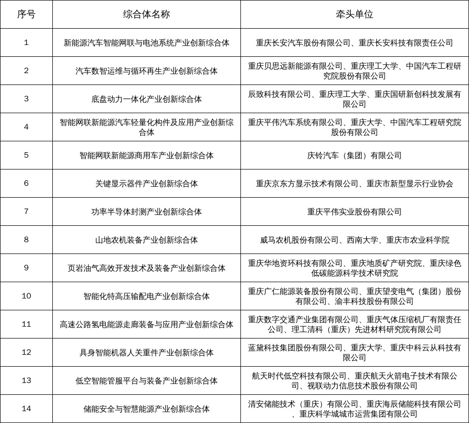 根据《关于印发〈重庆市产业创新综合体建设方案(2024—2027年)〉的通知》(渝经信发〔2024〕64号)和《关于开展2025年重庆市产业创新综合体建设项目申报的通知》(渝经信发〔2025〕59号)要求,经各申报单位自主申报、区县推荐、专家评审、委党组会议审议,拟确定14家第二批产业创新综合体(科技型企业主导型)建设单位,现予以公示。